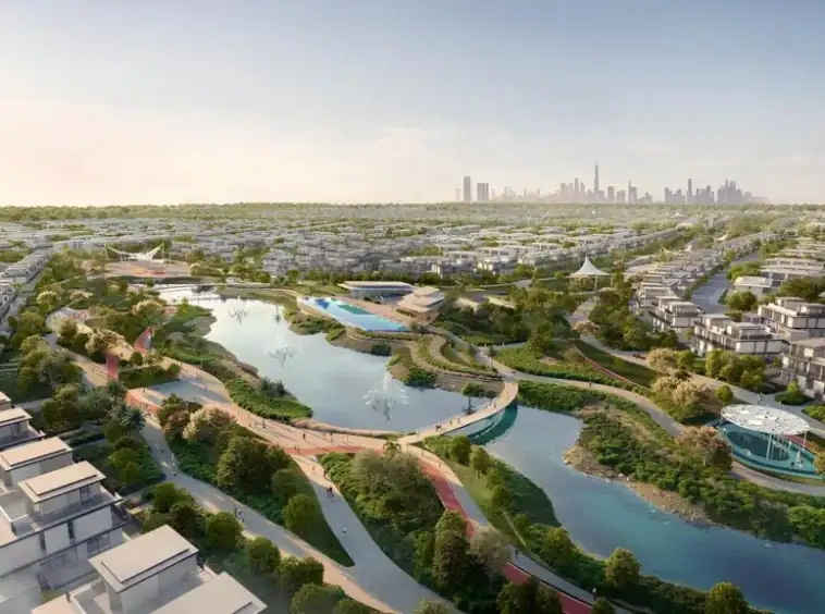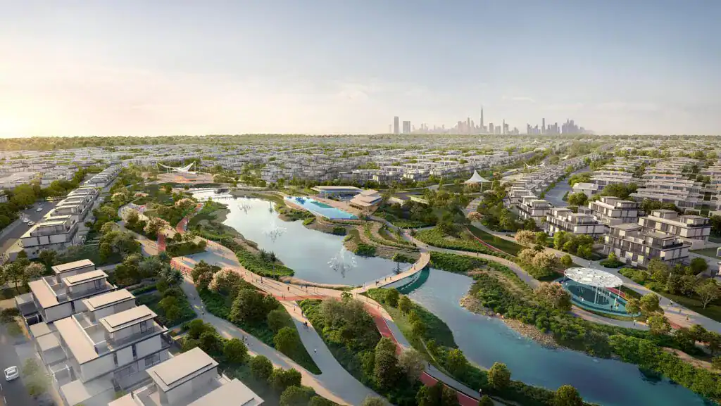 The project features 3-5BR villas, ranging from ~3,400 sq.ft to ~ 5,800 sq.ft and positioned for family end users and investors seeking stable residential fundamentals. At the centre of the community is the Country Club & Wellness Centre, supported by landscaped greenways, water features, event plazas, and 38 km of cycling and jogging tracks woven through the neighbourhood. With fast access to Al Maktoum International Airport, Dubai Investment Park, Dubai South, and Downtown Dubai, the project balances privacy and space with practical connectivity.